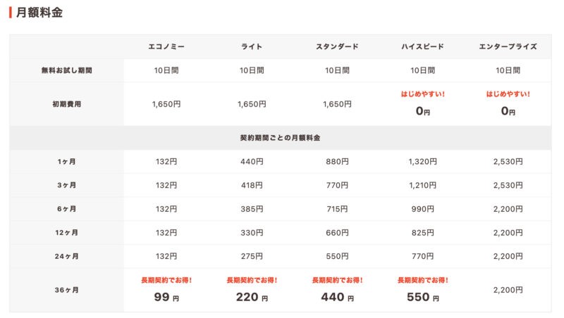 ハイスピード、エンタープライズプランは初期費用0円!