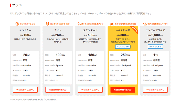 ロリポップの特長は誰でも簡単に利用でき、選べるプランが充実しています。