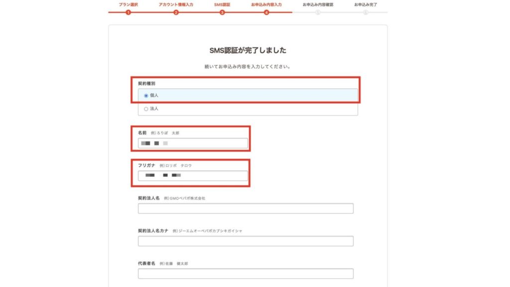 4.SNS認証が完了したら申し込み内容入力
