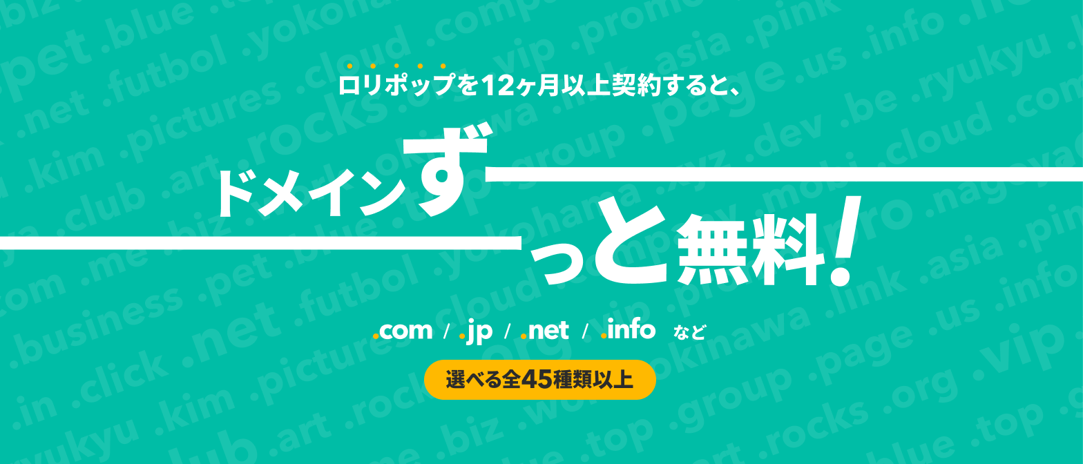 ロリポップなら独自ドメインも無料で取得できます。
